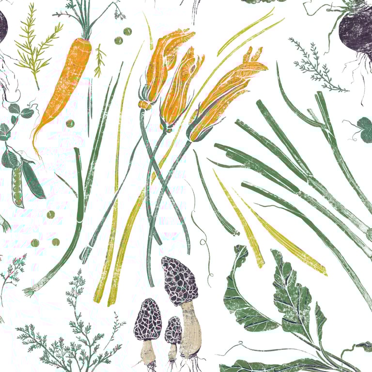 Seamless patterns inspired by rich & juicy nature gifts, created in crayon